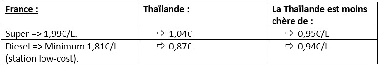 Mais en fait, faisons une petite comparaison… => "Un plein d'essence ici (en Thaïlande) revient à ~54€ vs ~100€ chez nous" // Regardons cela en détail :