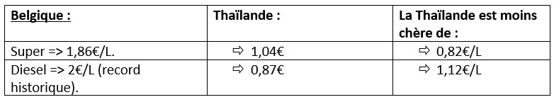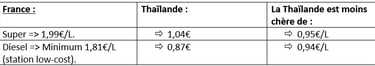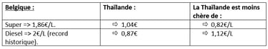 *A combien revient le diesel et l'essence super en Belgique et en France par rapport à la Thaïlande ?